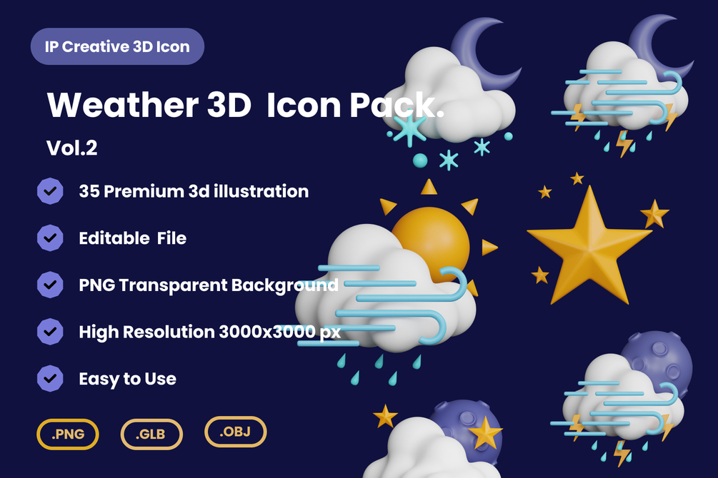 weather 3d icon pack, with various kinds of weather to suit your needs. high resolution with dynamic design.